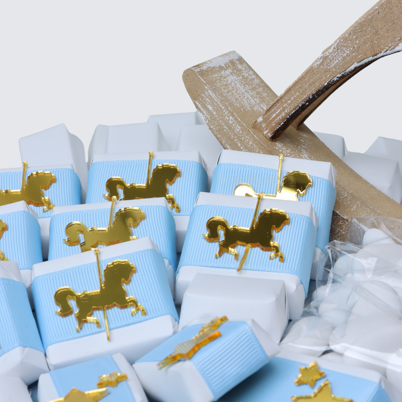 Baby boy acrylic carousel decorated chocolate...HMPR36Our chocolate is sold in milk, dark and white chocolate with assorted fillings, with 80% of the quantity in milk...