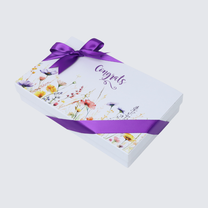 Congrats floral designed chocolate medium hamperC202529Our chocolate is sold in milk, dark and white chocolate with assorted fillings, with 80% of the quantity in milk...