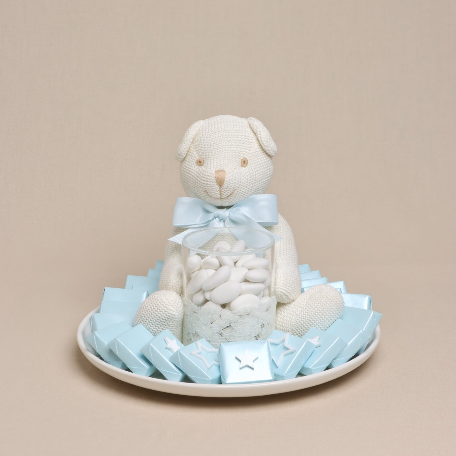 Baby boy acrylic star decorated chocolate & almond dragees ceramic plateBaby boy acrylic star decorated chocolate & almond dragees ceramic plateBaby boy acrylic star decorated chocolate & almond dragees ceramic plate