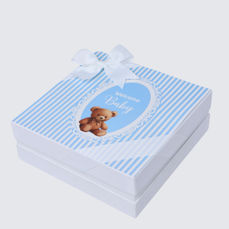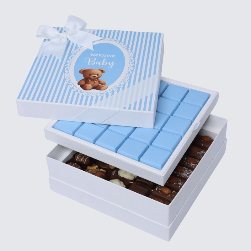 Baby boy "welcome baby" teddy designed 2-layer chocolate hard boxBaby boy "welcome baby" teddy designed 2-layer chocolate hard boxBaby boy "welcome baby" teddy designed 2-layer chocolate hard box