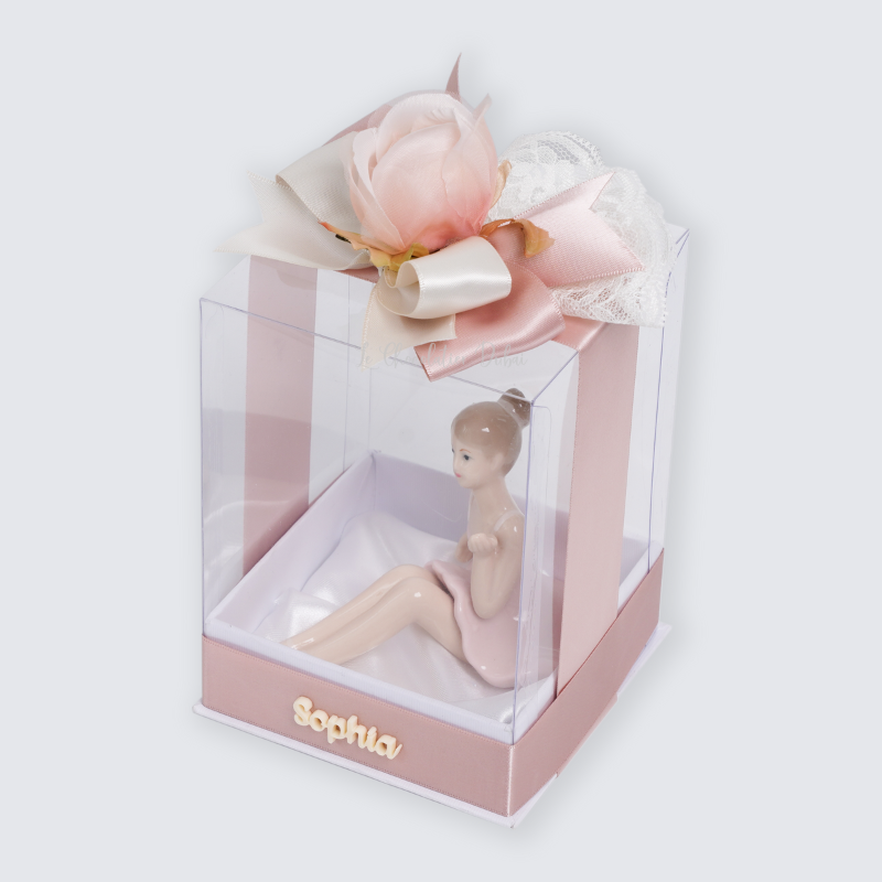Set of 20 Baby acrylic name personalized ceramic ballerina clear box