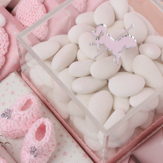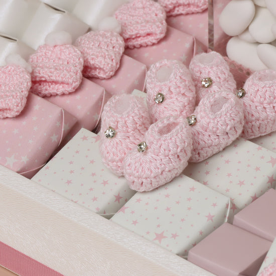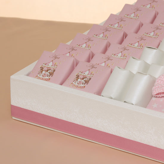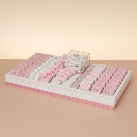 Approximately 1.23 kg premium chocolate (28 pieces printed wrapped, 20 pieces crochet designed, 21 pieces solid color wrapped), 150 grams Almond dragees