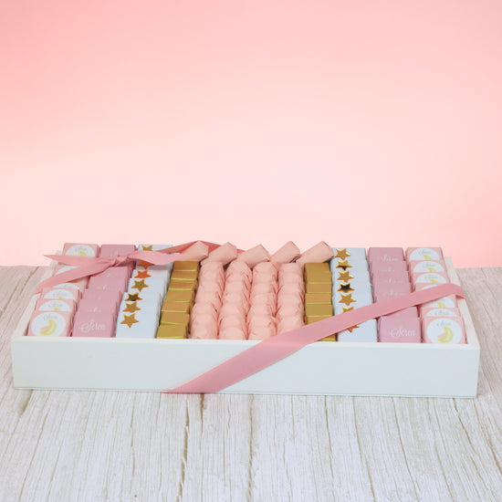Approximately 1.48 kg premium chocolate (32 pieces printed designed wrapped, 16 pieces premium acrylic decorated wrapped, 40 pieces premium solid color wrapped)