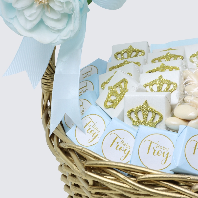 Baby boy prince decorated chocolate medium basketBaby boy prince decorated chocolate medium basketBaby boy prince decorated chocolate medium basket