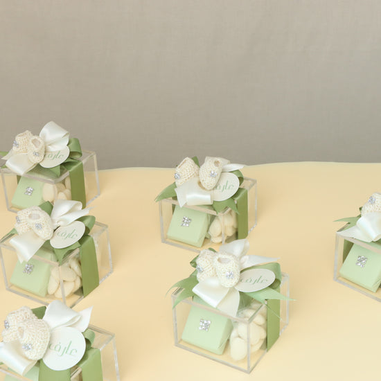 • Baby personalized crochet shoes decorated premium chocolate acrylic box