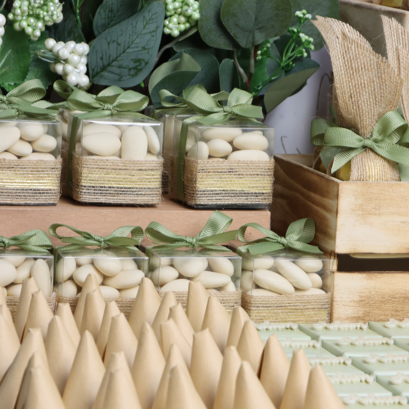 3.1 kg premium chocolate ( 50 pieces acrylic decorated wrapped, 35 pieces designed wrapped, 30 pieces decorated wrapped, 40 pieces solid wrapped), 20 boxes almond dragees (50 grams)