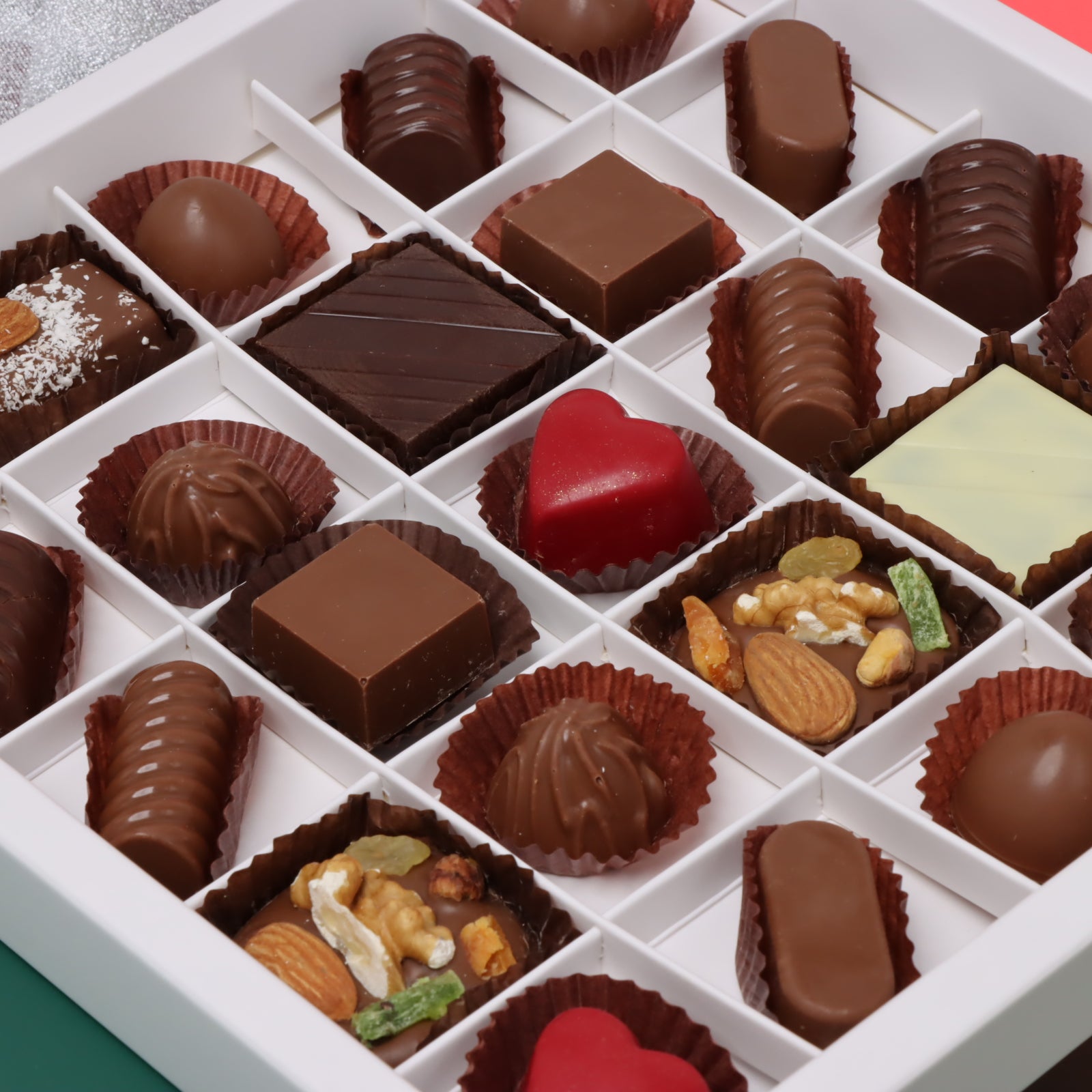 Our chocolate is sold in milk, dark and white chocolate with assorted fillings, with 80% of the quantity in milk chocolate normally.