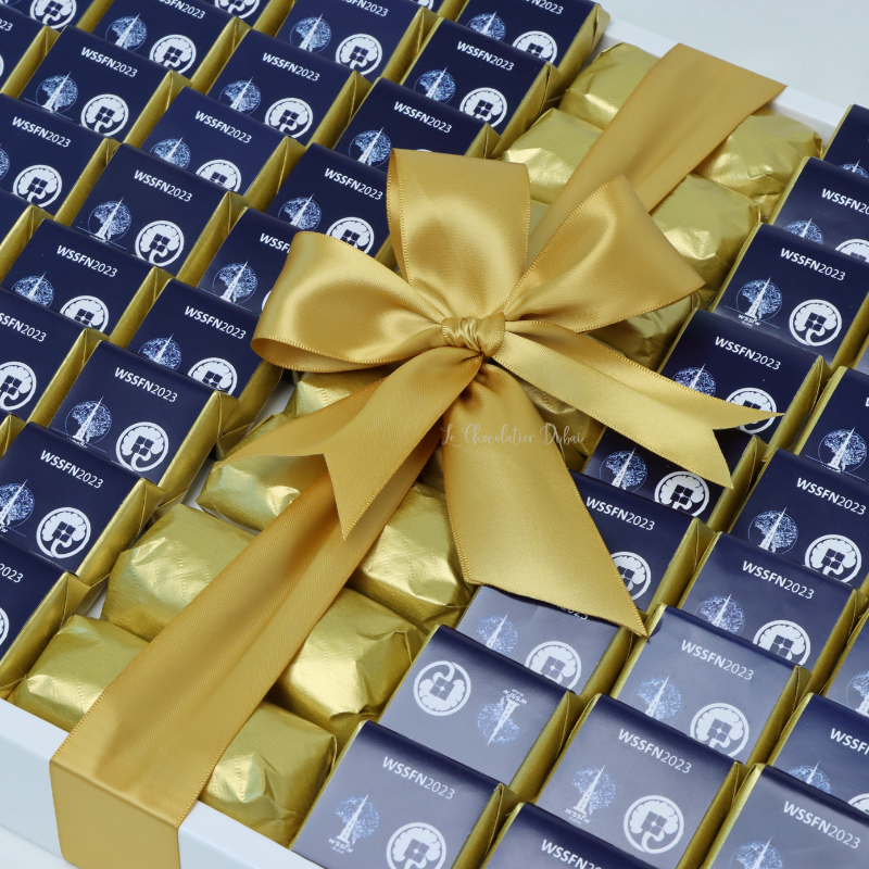 Approximately 2.36 kg premium chocolate (108 pieces branded wrapped, 16 pieces solid wrapped)