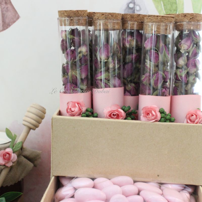 Luxury rustic theme decorated dried rose glass jar giveaway