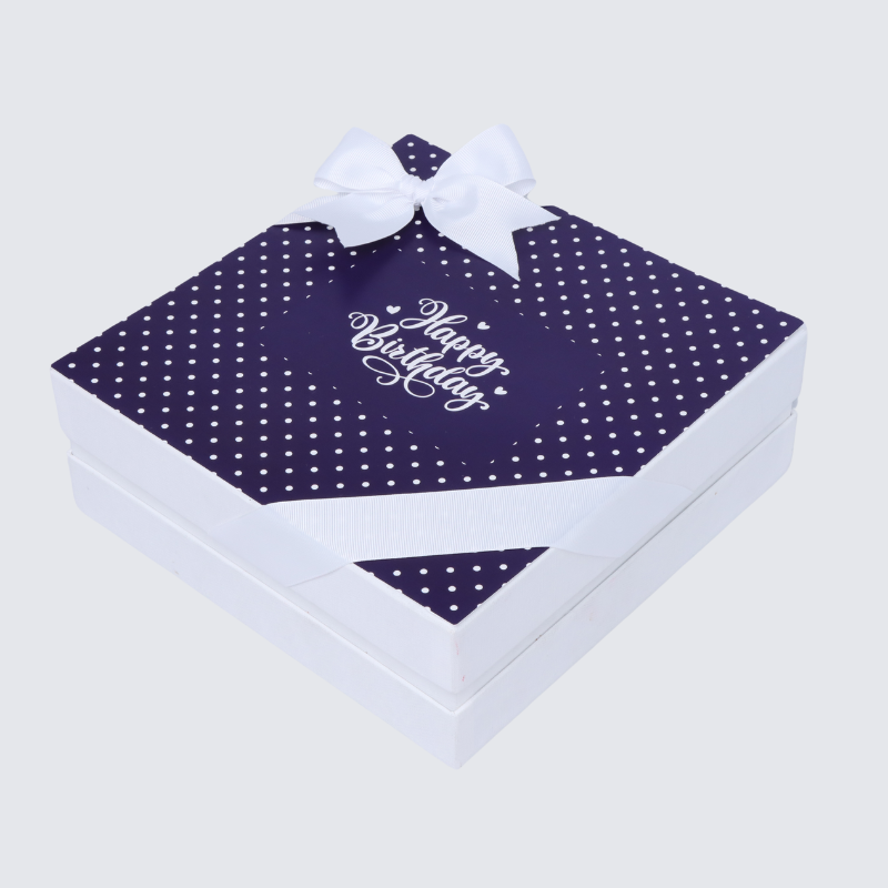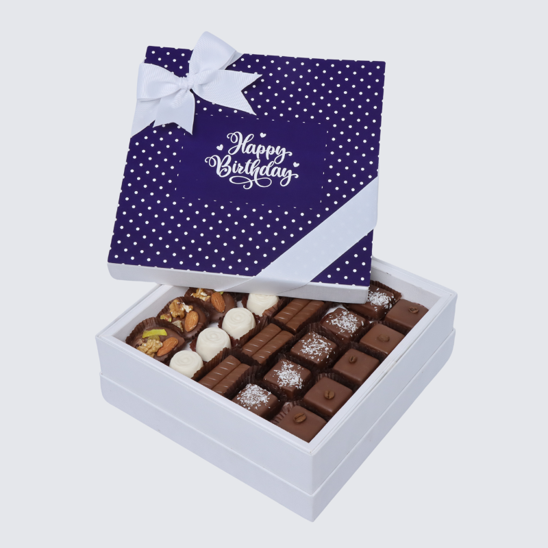 "Happy birthday" navy blue polka dot designed chocolate hard box"Happy birthday" navy blue polka dot designed chocolate hard box