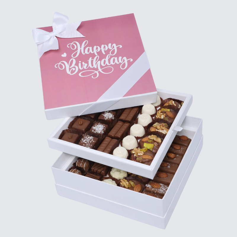 "Happy birthday" pink designed 2-layer chocolate hard box"Happy birthday" pink designed 2-layer chocolate hard box
