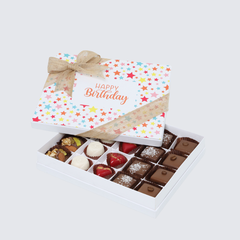 "Happy birthday" star colorful designed 20-piece chocolate hard box"Happy birthday" star colorful designed 20-piece chocolate hard box