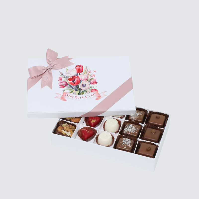 "happy mother's day" floral designed 15-piece chocolate hard box