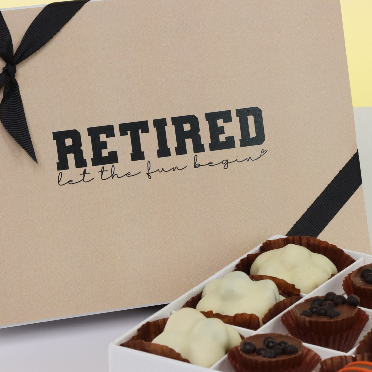 "Let the fun begin" retirement 12-piece premium chocolate hard box"Let the fun begin" retirement 12-piece premium chocolate hard box"Let the fun begin" retirement 12-piece premium chocolate hard box