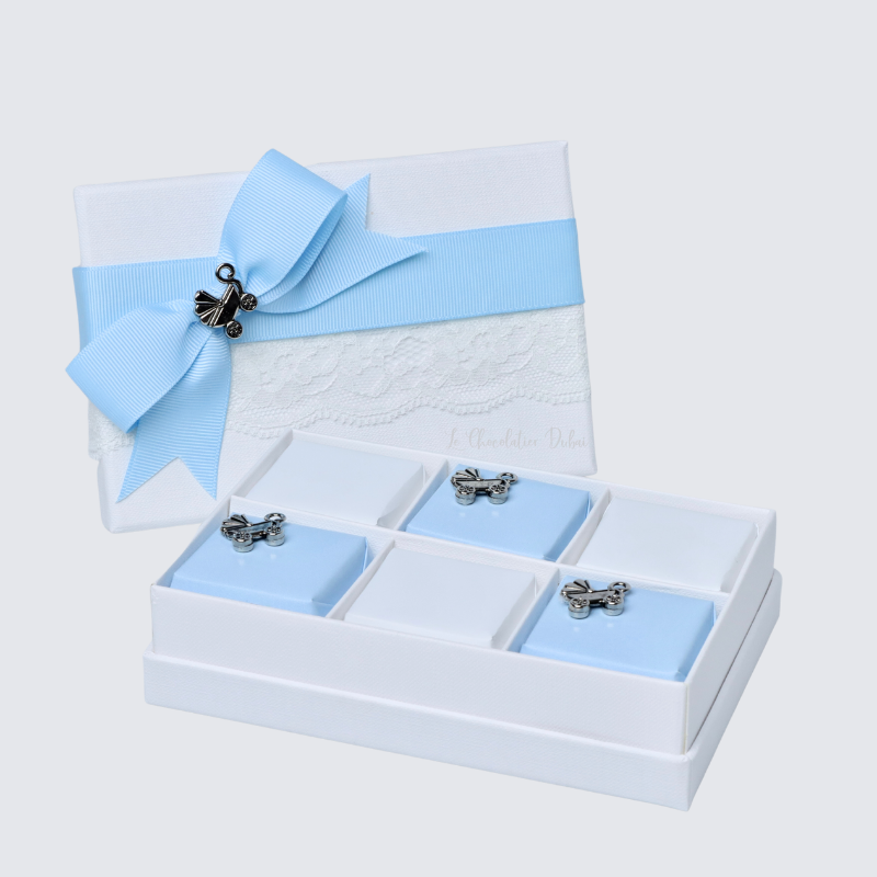 Set of 20 Baby cradle decorated chocolate 6-piece hard box