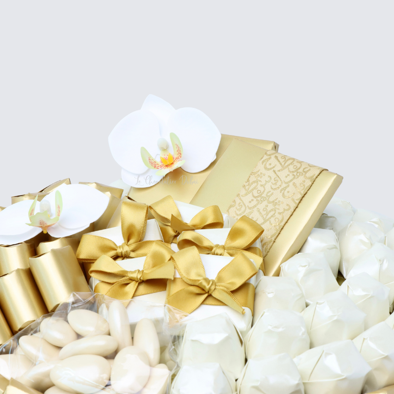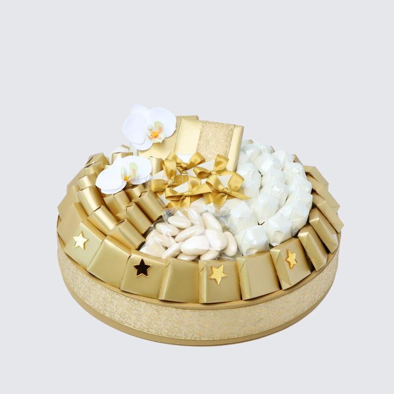 1.20 kg Premium chocolate (70 pieces solid wrapped, 7 pieces decorated wrapped) 50 grams almond dragees