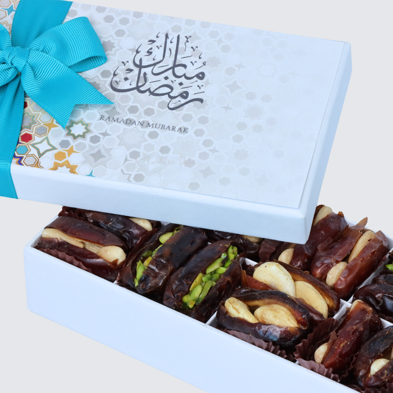 Set of 10 Ramadan designed premium nut stuffed dates 8-piece hard boxSet of 10 Ramadan designed premium nut stuffed dates 8-piece hard box