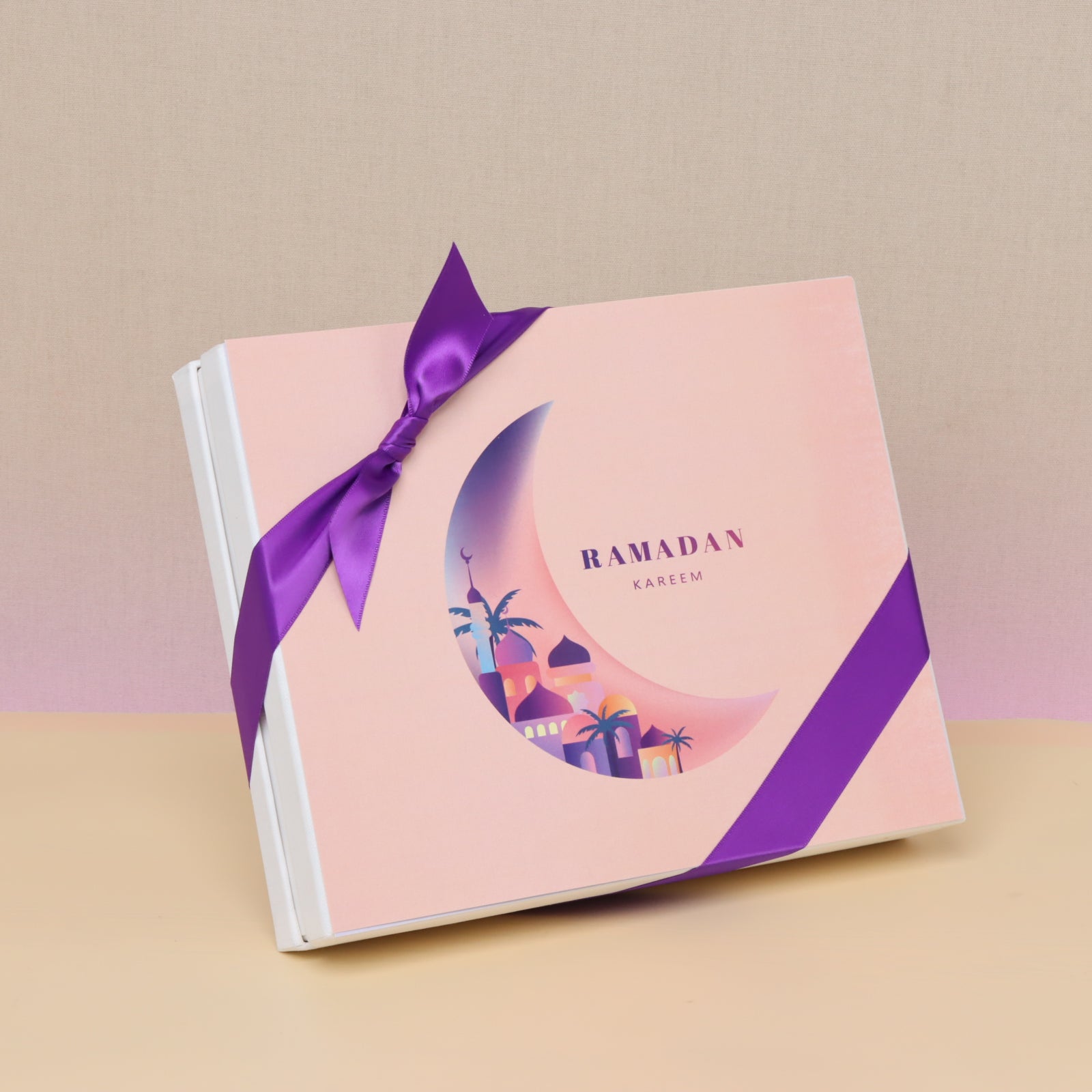 Ramadan kareem crescent designed chocolate & dates 20-piece hard boxRamadan kareem crescent designed chocolate & dates 20-piece hard box