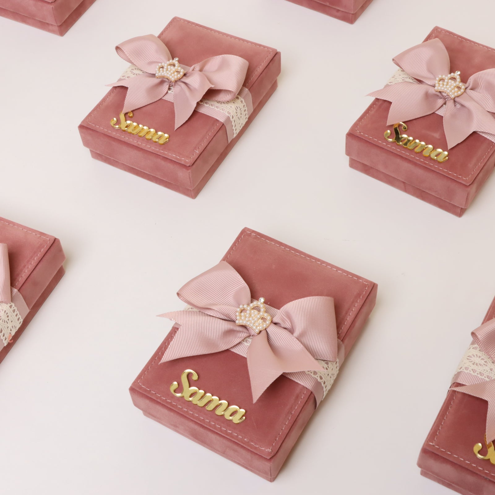 Set of 20 Baby acrylic name decorated velvet Quran boxSet of 20 Baby acrylic name decorated velvet Quran box