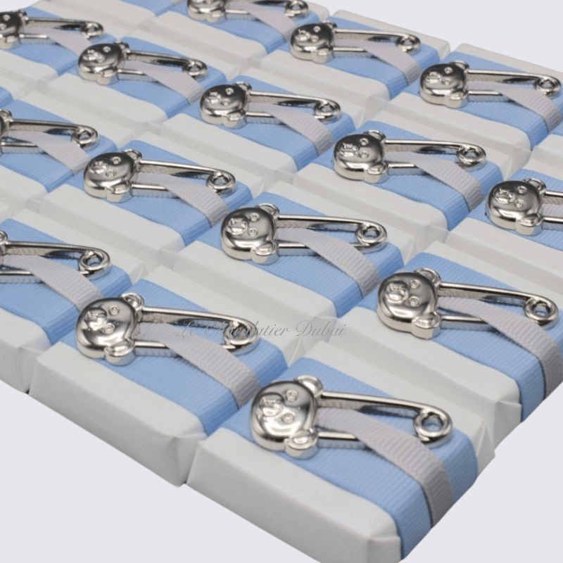 Baby boy teddy bear pin decorated chocolate